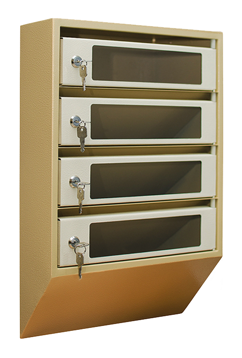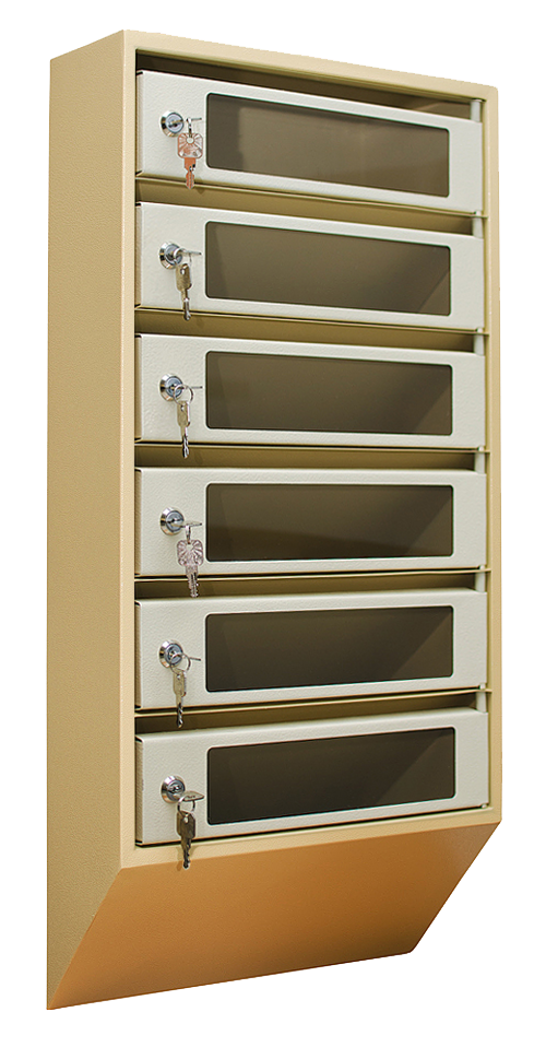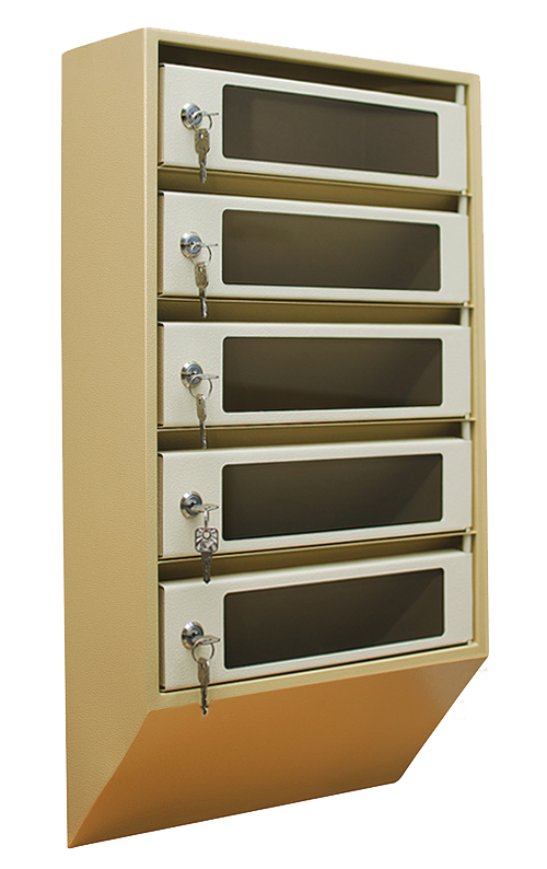 Данная модель почтового ящика представляет собой «симбиоз» между стандартными почтовыми шкафами и ящиками с прозрачными дверками. Эта модель воплотила в себя все лучшие потребительские свойства двух моделей шкафов. Каждая абонентская ячейка почтового ящика снабжена стеклянным окошком из поликарбонатного небьющегося стекла. Что даёт возможность абоненту визуально определить наличие корреспонденции.